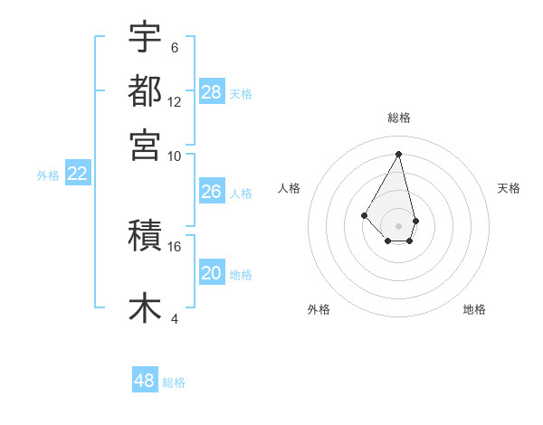 宇都宮 積木さんを姓名の画数から五運を鑑定