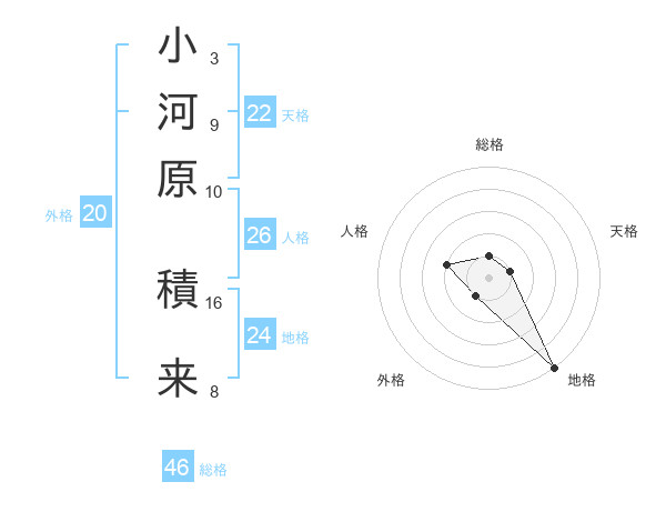 小河原 積来さんの地格は24画の5点!