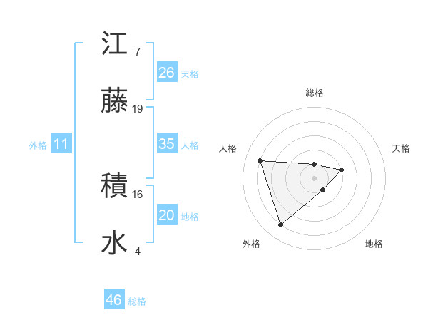 江藤 積水さんの総格は46画の1点!