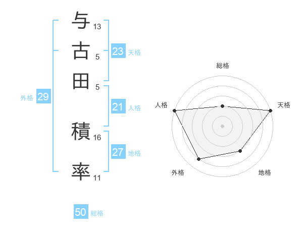 与古田 積率さんの天格は23画の5点!