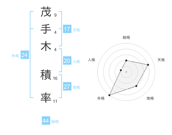 茂手木 積率さんの天格は17画の4点!