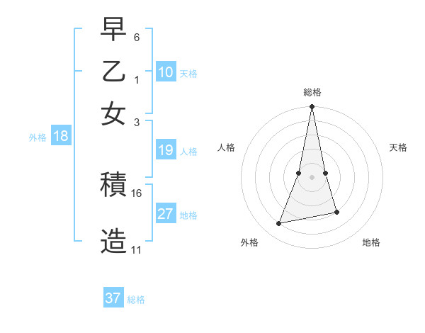 早乙女 積造さんの総格は37画の5点!