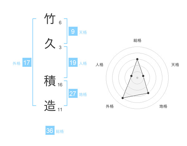 竹久 積造さんの総格は36画の3点!