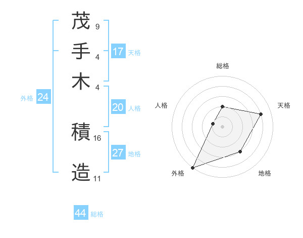 茂手木 積造さんの天格は17画の4点!