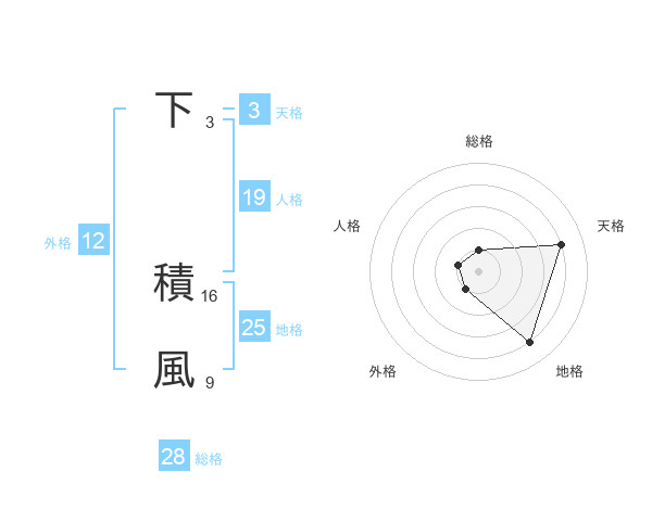 下 積風さんの総格は28画の1点!