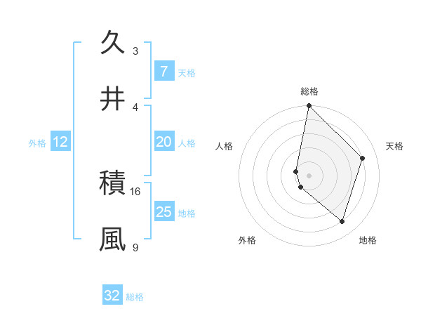 久井 積風さんの総格は32画の5点!