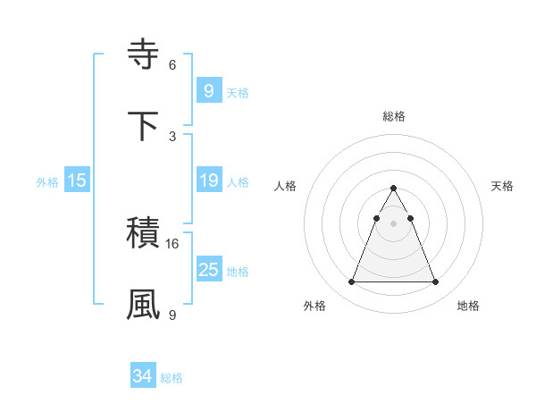 寺下 積風さんの地格は25画の4点!
