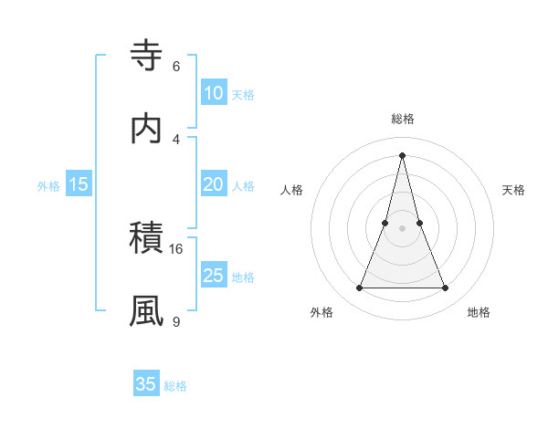 寺内 積風さんを姓名の画数から五運を鑑定