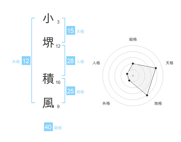 小堺 積風さんの総格は40画の2点!