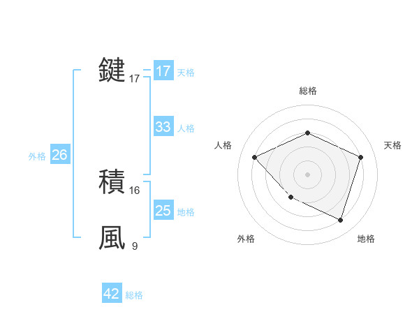 家系が持つ宿命的な運勢を表します。祖先から受け継いだ苗字ですので自分の力が及びません。家柄を象徴します。