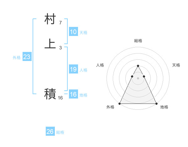 村上 積さんの総格は26画の2点!