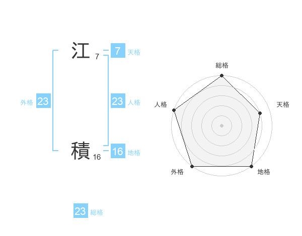 江 積さんの外格は23画の5点!