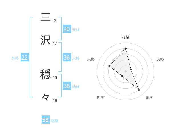三沢 穏々さんを姓名の画数から五運を鑑定