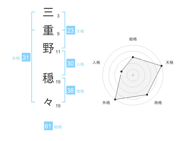 三重野 穏々さんを姓名の画数から五運を鑑定