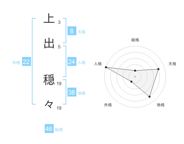 上出 穏々さんの地格は38画の4点!