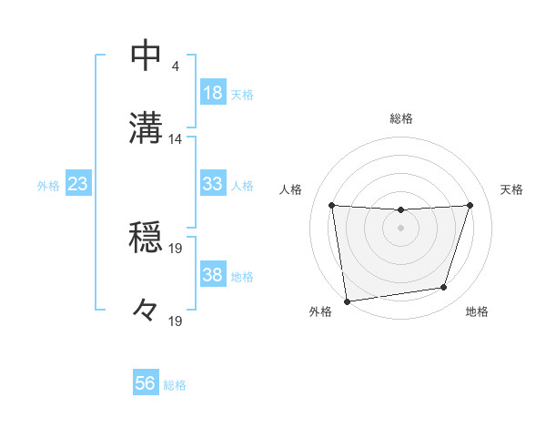 中溝 穏々さんの地格は38画の4点!