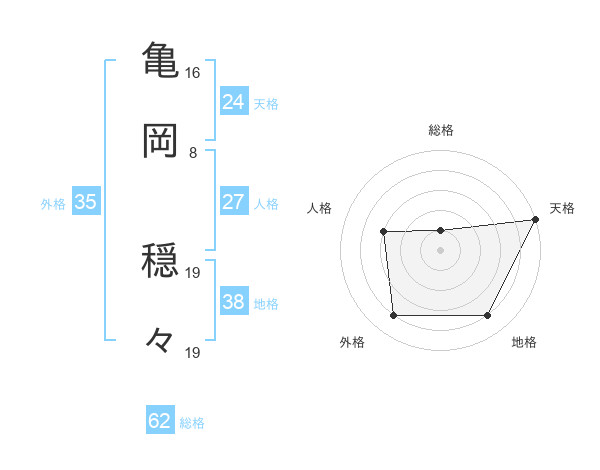 亀岡 穏々さんを姓名の画数から五運を鑑定