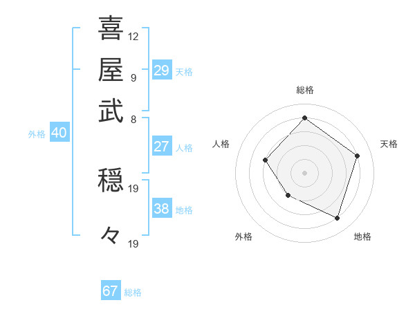 喜屋武 穏々さんを姓名の画数から五運を鑑定