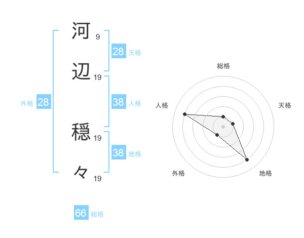 河辺 穏々さんの総格は66画の1点!