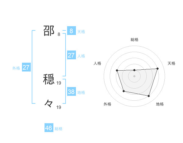 邵 穏々さんの地格は38画の4点!