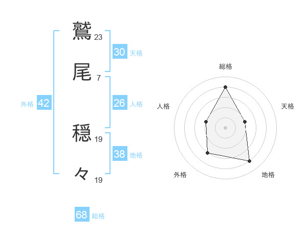 鷲尾 穏々さんの総格は68画の4点!