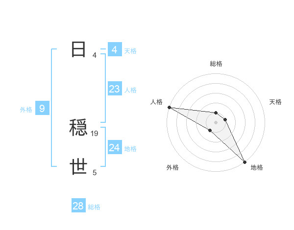 日 穏世さんの総格は28画の1点!
