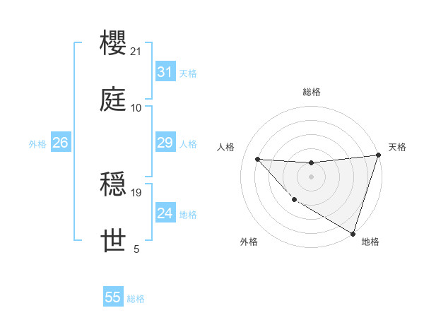 櫻庭 穏世さんの天格は31画の5点!