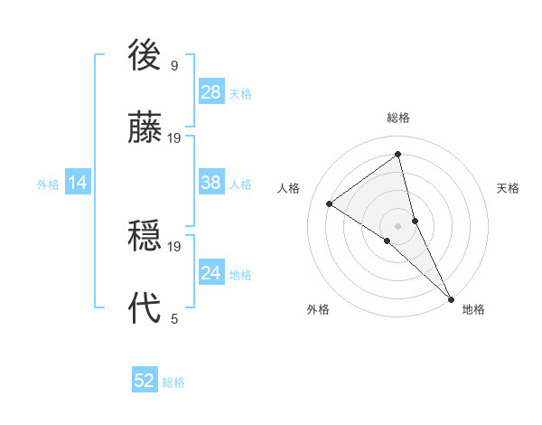 後藤 穏代さんを姓名の画数から五運を鑑定