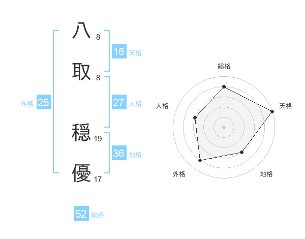 八取 穏優さんの総格は52画の4点!