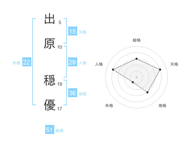 出原 穏優さんの総格は51画の3点!