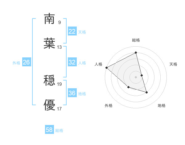 南葉 穏優さんを姓名の画数から五運を鑑定