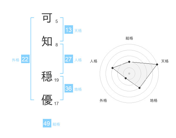 可知 穏優さんの総格は49画の2点!
