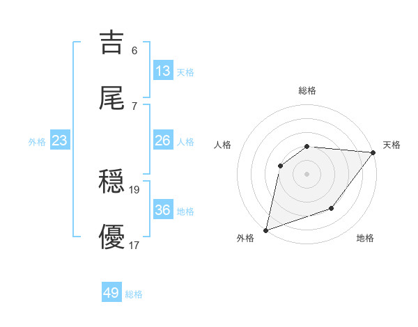 吉尾 穏優さんの総格は49画の2点!