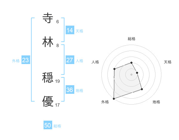 寺林 穏優さんの総格は50画の2点!
