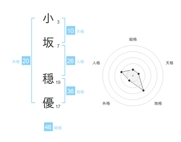 小坂 穏優さんを姓名の画数から五運を鑑定