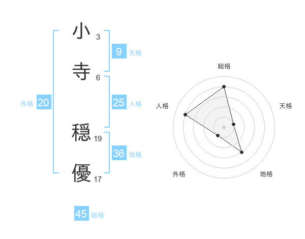 小寺 穏優さんの総格は45画の4点