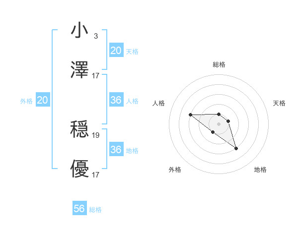 小澤 穏優さんを姓名の画数から五運を鑑定