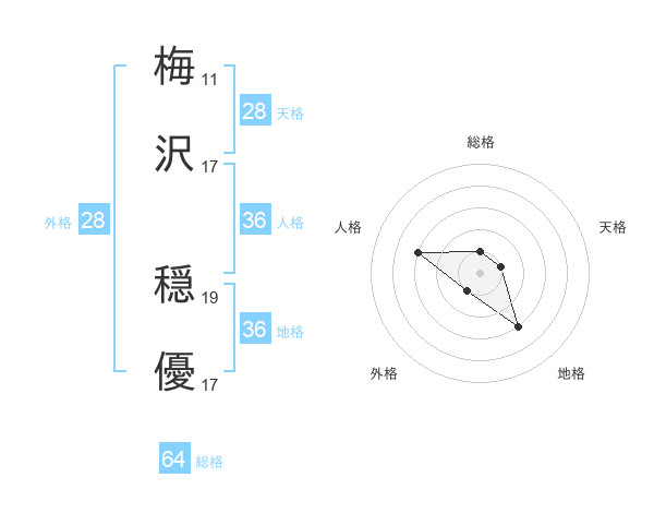 梅沢 穏優さんの総格は64画の1点!
