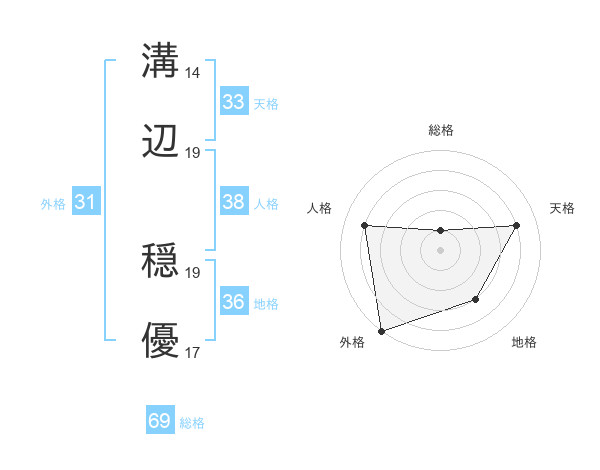溝辺 穏優さんの総格は69画の1点!