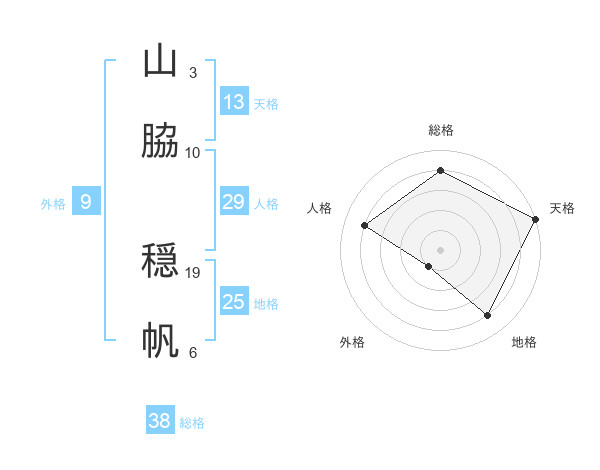山脇 穏帆さんを姓名の画数から五運を鑑定