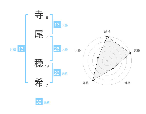 寺尾 穏希さんを姓名の画数から五運を鑑定