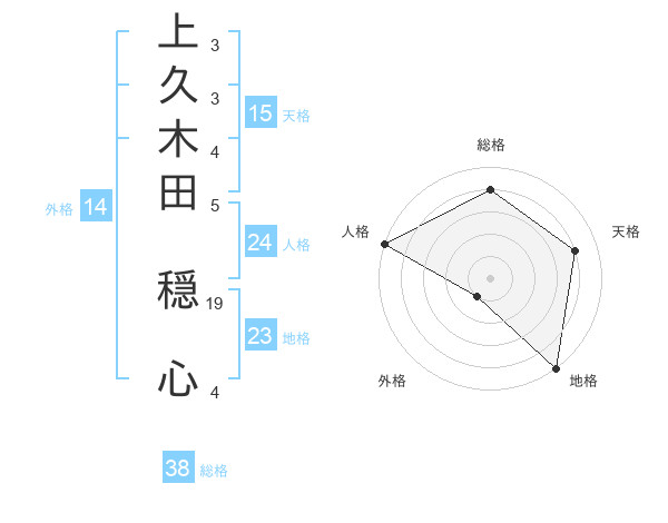 上久木田 穏心さんを姓名の画数から五運を鑑定