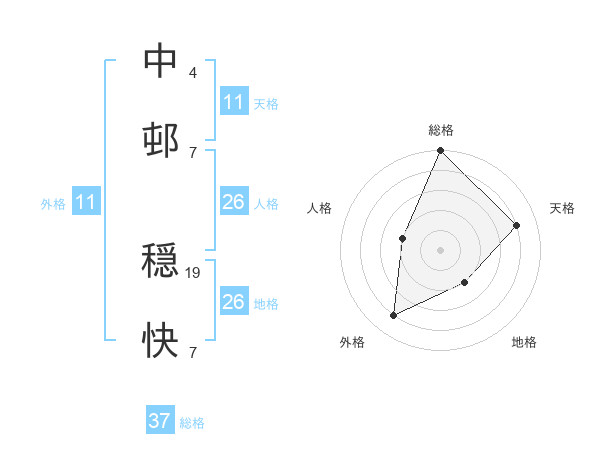 中邨 穏快さんの総格は37画の5点!