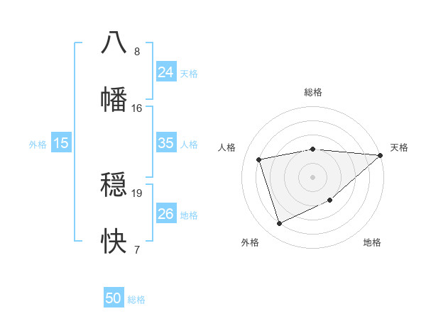 八幡 穏快さんの総格は50画の2点!