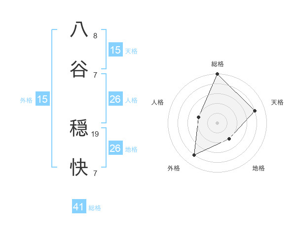 八谷 穏快さんを姓名の画数から五運を鑑定