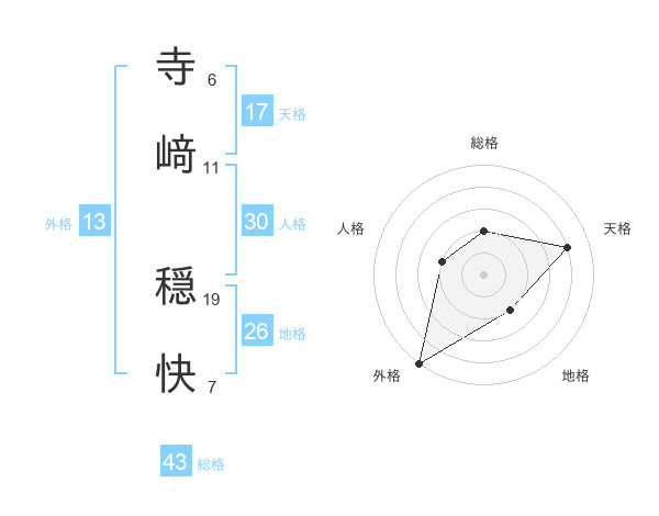 寺﨑 穏快さんを姓名の画数から五運を鑑定