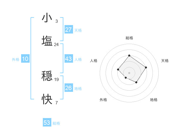 小塩 穏快さんの総格は53画の3点!