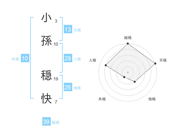 小孫 穏快さんの総格は39画の5点!
