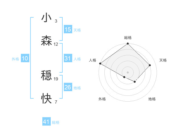 小森 穏快さんの総格は41画の5点!