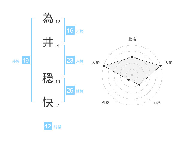 為井 穏快さんの天格は16画の5点!